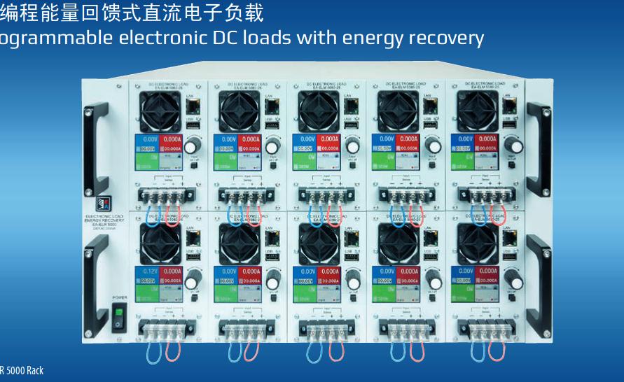 新系列EA-ELR 5000專門設計成可配置成多通道直流電子負載的。在一個19”的機柜系統內,可以安裝10臺功率為320 W的直流負載模塊。每個模塊可獨立操作,但是要求機柜內安裝能量轉換的DC-AC逆變設備。模塊還可擴展,可將模塊的直流輸入端并聯起來。負載模塊有兩種輸出電壓,一個是80 V,一個是200 V。并且配有通用的調整模式:恒壓(CV),橫流(CC)與恒功率(CP)。