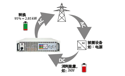 消耗能量,如: 3kW被測(cè)設(shè)備如:電源ACDC轉(zhuǎn)換95% = 2.85kW